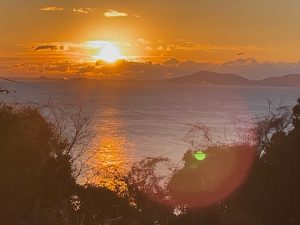 私は例年通りに、初日の出を拝ませて頂きました。陽が昇り、三河湾の水面に自分に向かって伸びて来る