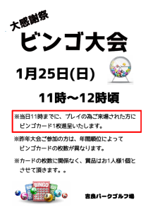 1月25日(日)はビンゴ大会と第105回カトー建装杯を開催いたします。 この大会は、初心者さまから経験者さままで大歓迎の大会です。大会後に吉良PGシリーズ2025の表彰式とビンゴ大会を行います。 今回のビンゴ大会は、大会に参加されなくても1/25(日)のAM11:00までにプレイの為来場されれば、ビンゴカードを1枚進呈させて頂きます。 ぜひ、皆さまのご参加お待ちいたしております。