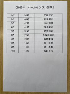 ホールインワン、気持ちいいですね。昨年2025年もたくさん出ましたので、少し紹介させて頂きます。