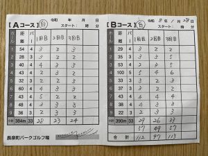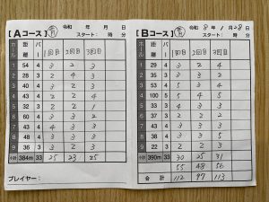 2回目 白A-23 白B-26 青A-23 青B-25 合計97 やったあ。とりあえず100切クリア。でも非常に疲れました。体よりも頭が疲れる。