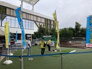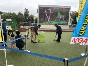豊川市のイオンモールドで、パークゴルフ体験コーナーを設け、多くの方達にパークゴルフの楽しさを体験して頂きました。吉良から石川磯治さん、有馬康博さん、鈴木雄太さん、向浩章さんの4人がスタッフとして1日中、一生懸命にパークゴルフの楽しさを伝えてくれました。又、準備として久保田道也さん、大村将摩さんの二人でカップの台を作成して頂きました。そしてニッタクスさんにもネットを用意して頂き多くの方に協力して頂きました。おかげでパークゴルフを知らない子供達、お父さん、お母さんに楽しく体験してもらう事となりました。